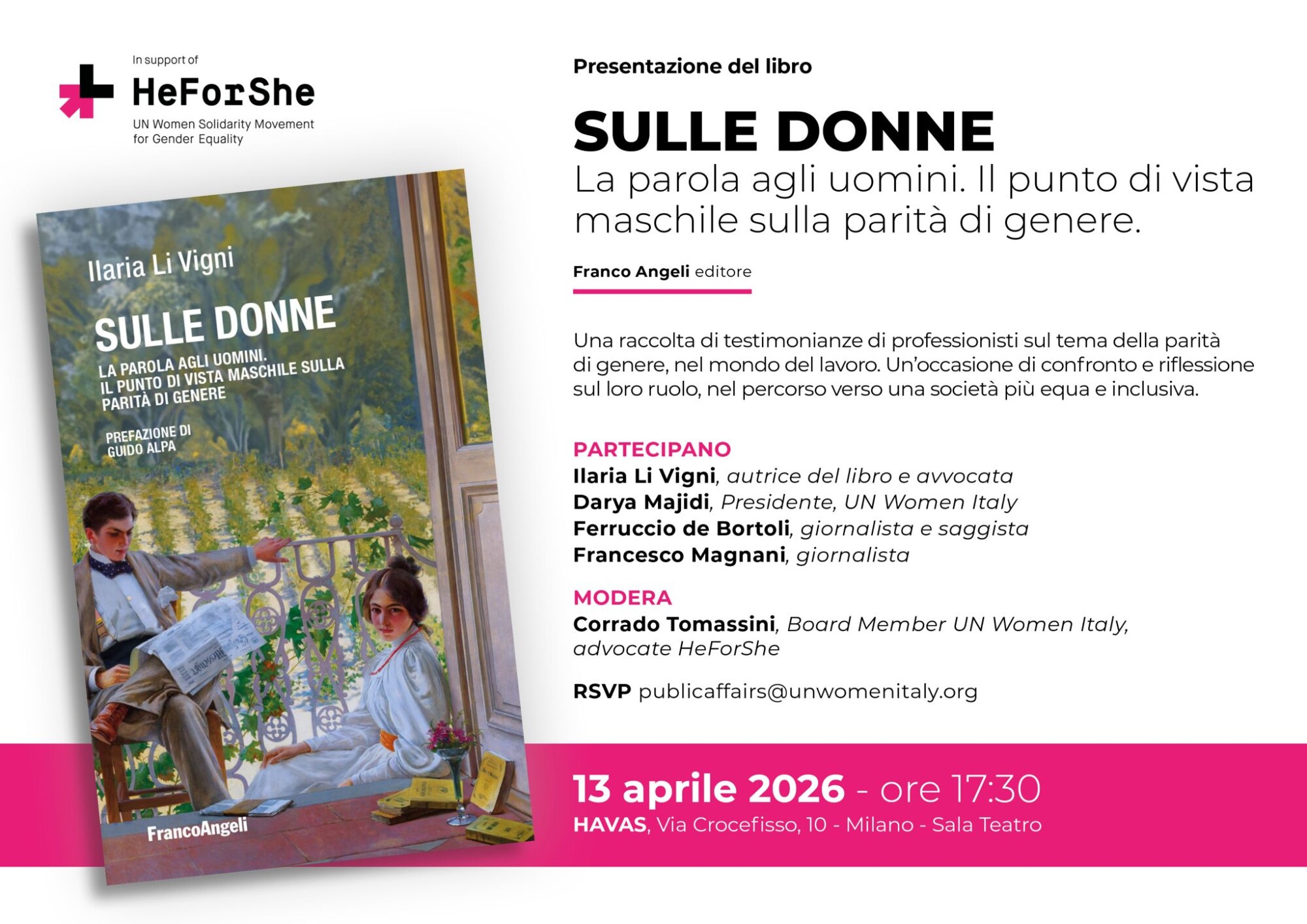 UN Women Italy e HeForShe presentano l’ultimo saggio di Ilaria Li Vigni sul ruolo degli uomini nel percorso verso la parità di genere, lunedì 13 aprile presso Havas Village a Milano.