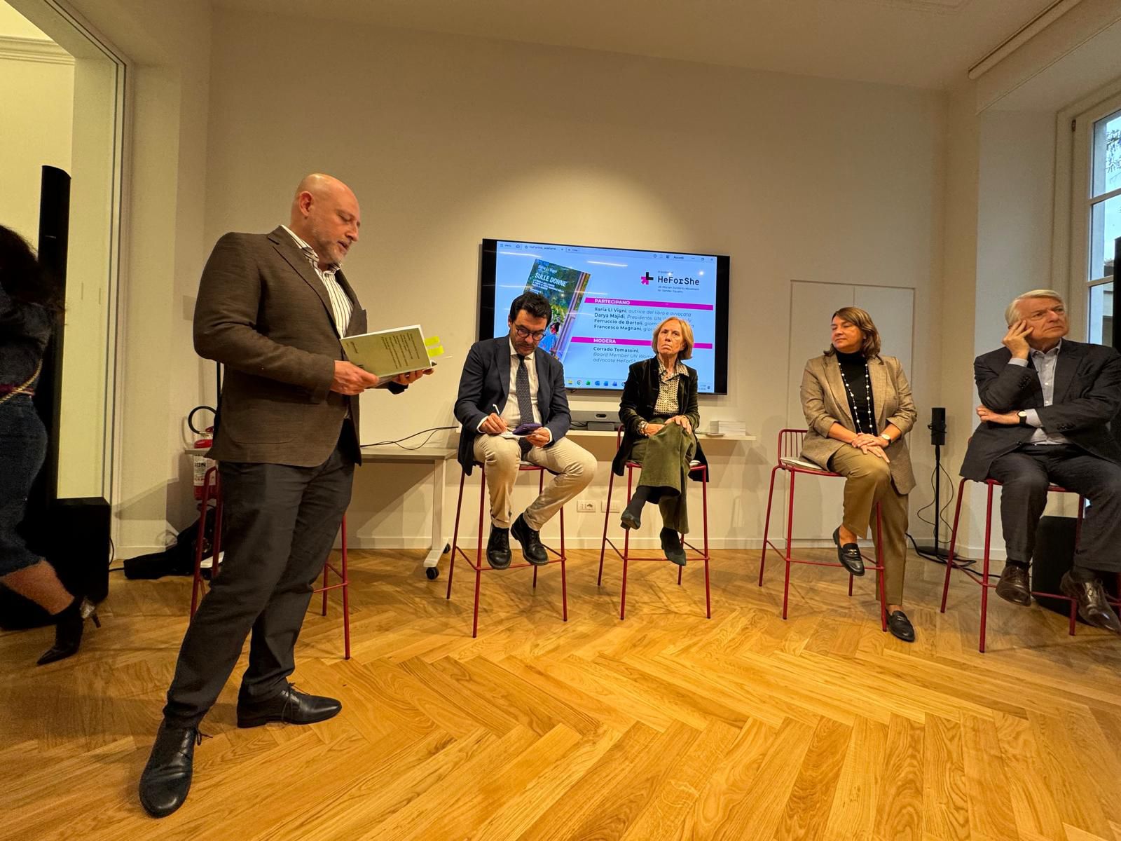 Il volume raccoglie le risposte di esponenti della politica, del giornalismo, delle professioni e dell’imprenditoria a cinque quesiti fondamentali su disparità retributive, retaggi culturali, politiche di welfare, impatto della pandemia e autostima femminile. Un contributo concreto al dibattito sulla parità, coerente con lo spirito del movimento HeForShe: gli uomini non come spettatori, ma come protagonisti attivi del cambiamento.